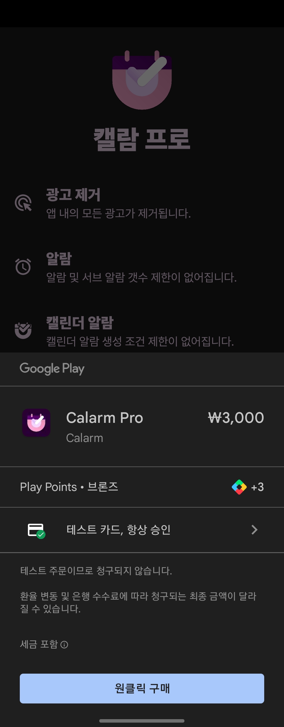 그리고 인앱 결제도 넣었다. 광고 제거랑 무료 버전에서 제한해놓은 것 (갯수 제한이나 예약을 좀 제한해두었음) 없앨 수 있게 해놨다.