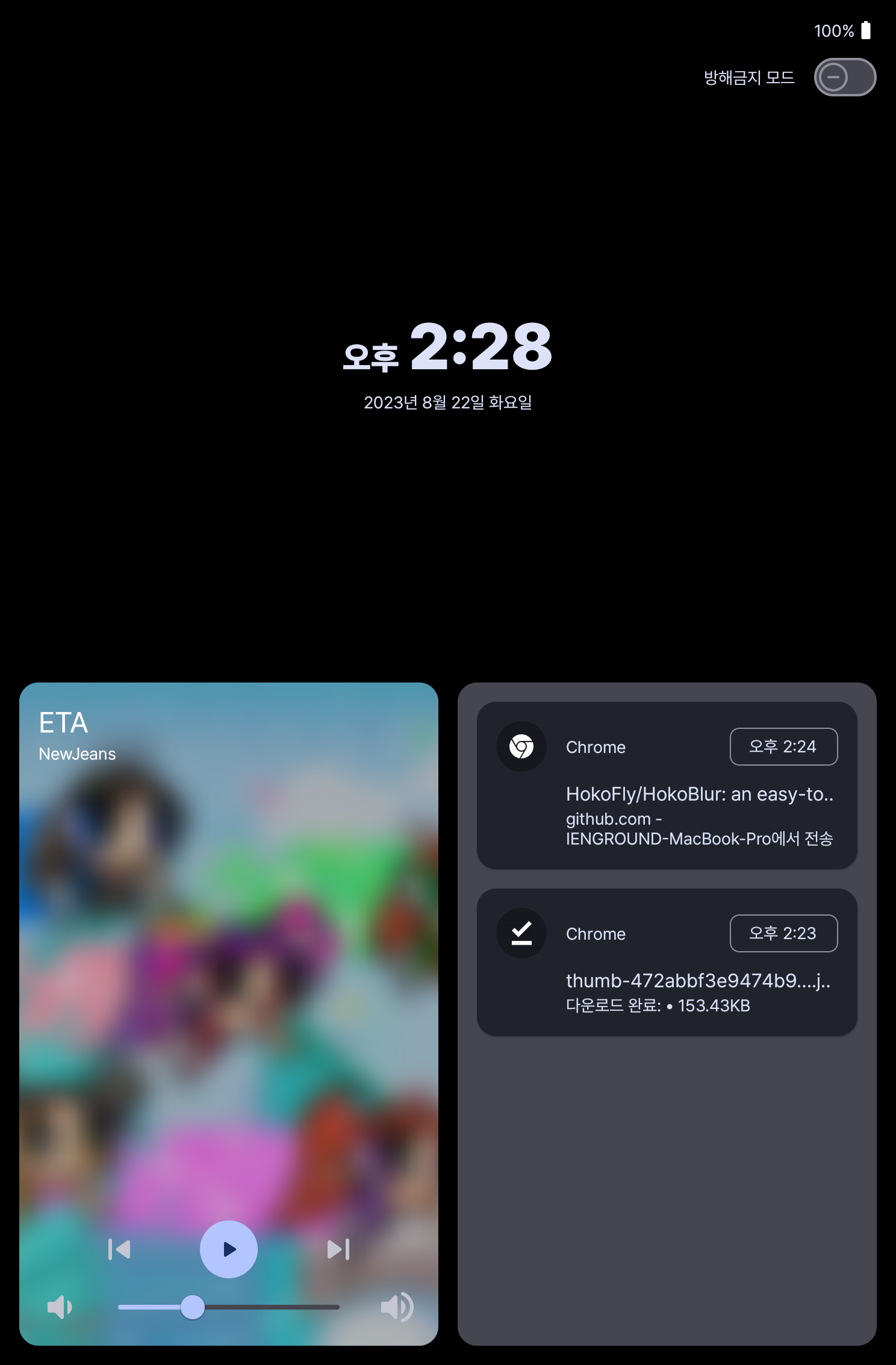 화면 보호기 기능을 추가했다. 원래 탁상시계 기능 자체도 화면 보호기 기능으로 넣었는데 정작 화면 보호기 API 적용을 안 해 놔서 (DreamService) 안 됐었는데 이번에 추가했다. 그리고 태블릿 세로 전용 UI도 넣었다. 음악 부분은 조금 더 수정을 하고 싶은데 이건 일단 이렇게 두기로 했다. 참고로 휴대폰 버전과 이미지가 달라보이는 이유는 라이브러리를 조금 바꿨다. Blurry 계속 DreamService에서는 튕기더라..
