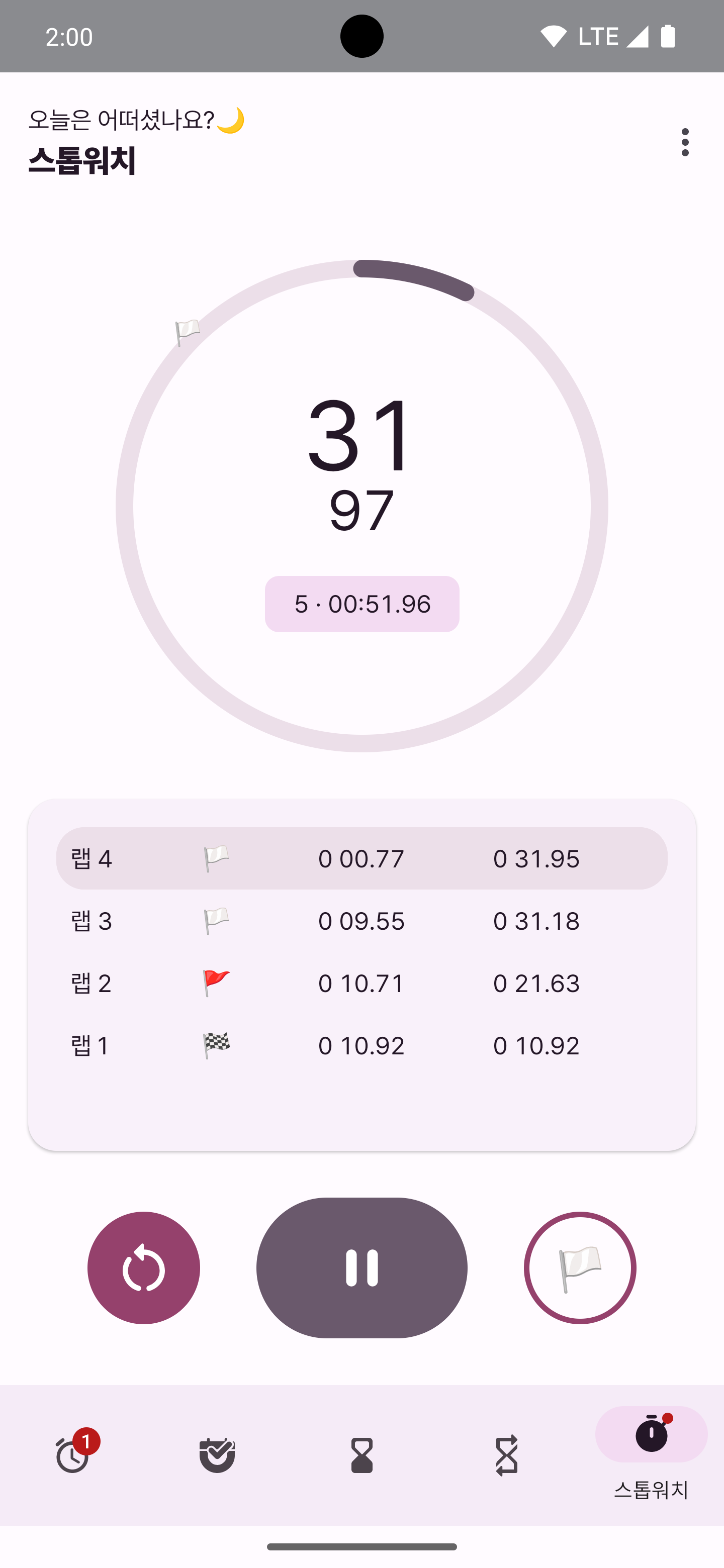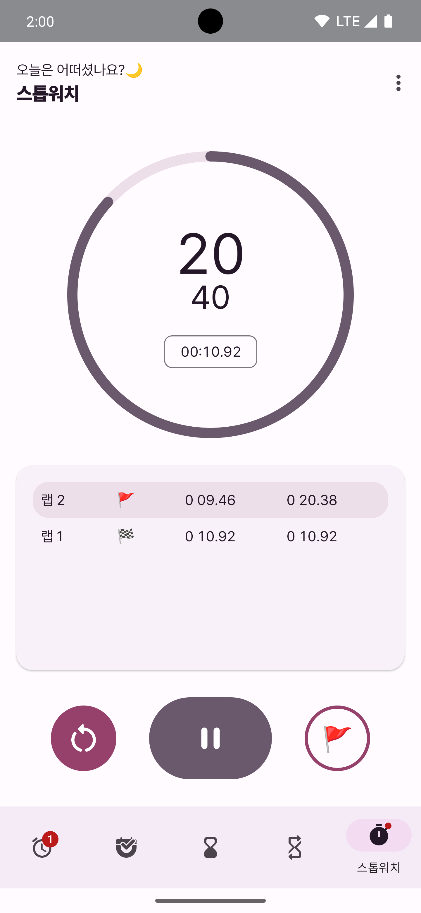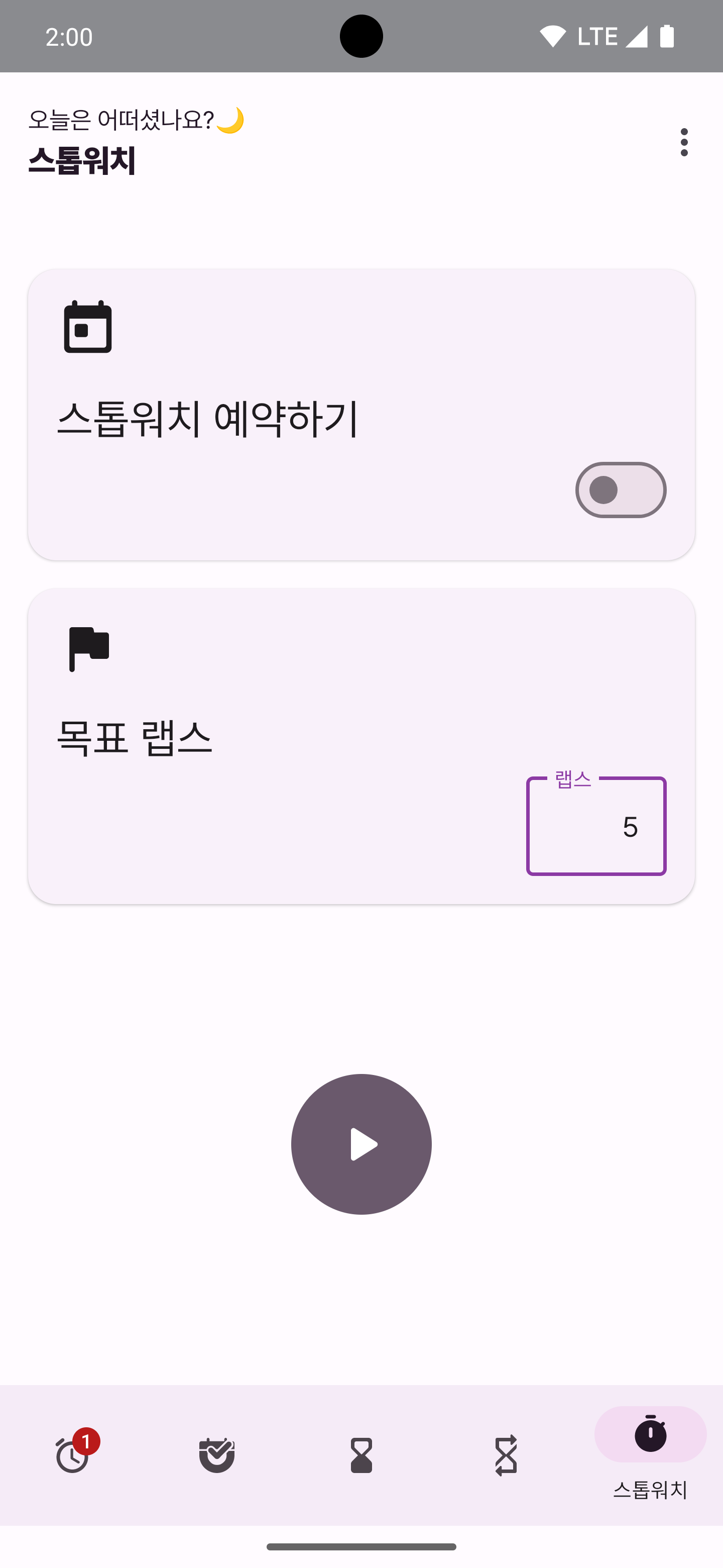 스톱워치를 손봤는데, 이건 저번에 뭐 웨이팅하다가 사람 빠지는 속도가 궁금해서 머리 쓰다가 이때까지 랩스의 평균, 그리고 목표 랩스까지 정보 받아서 예상 시간 (ETA! Estimated Time of Arrival.. 도착 예정 시간으로 쓸 수도 있겠지) 보여주기 기능을 넣었다. 그렇다보니 원래는 00:00 화면에 밑에 예약 메뉴만 있었는데 목표 랩스 정보를 받아야 하다 보니 UI를 좀 바꿨다.