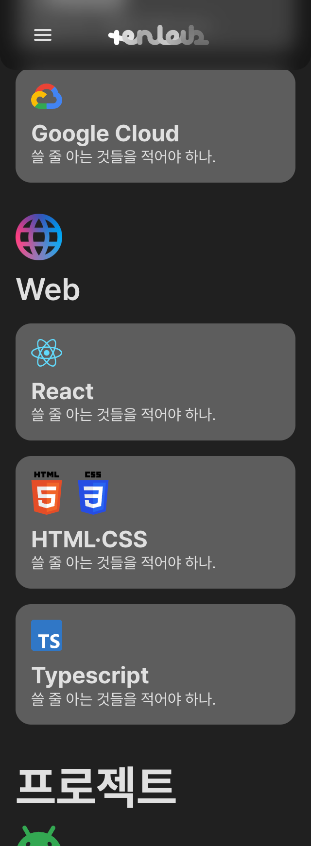 내용 추가 중! 모바일도 일단 지원하게 해두었다.