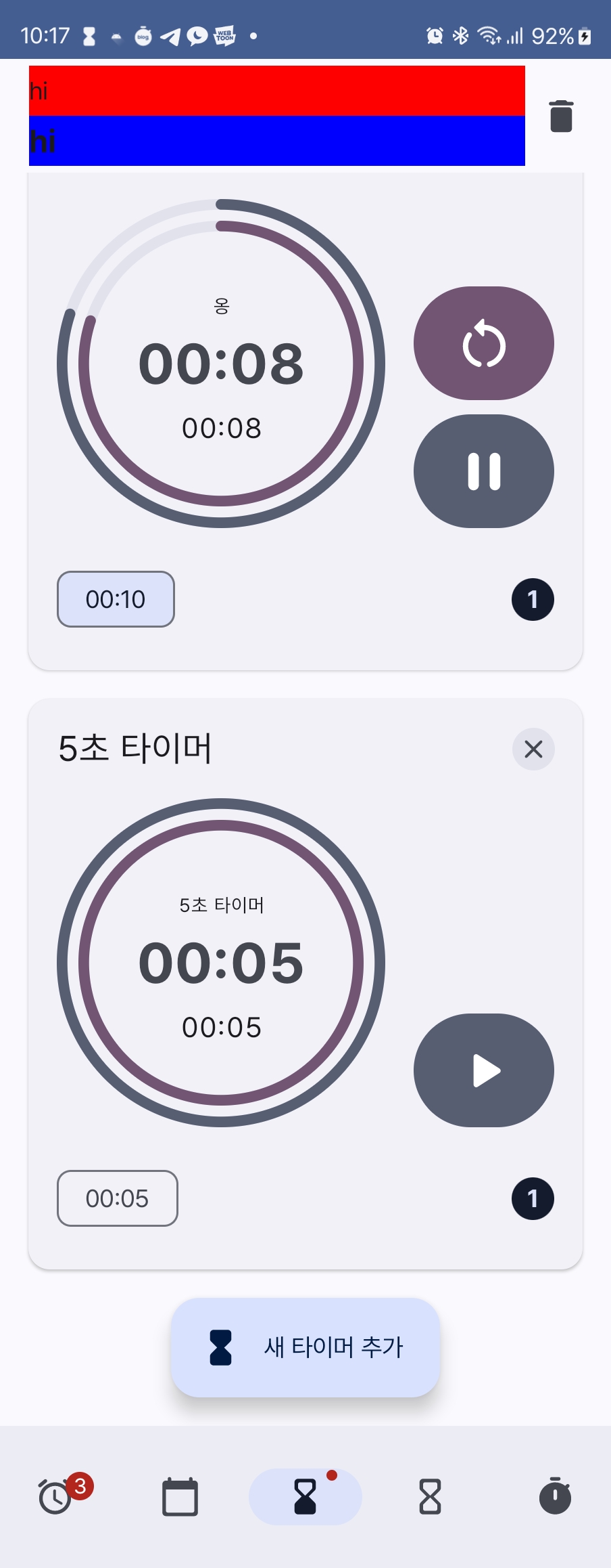 이건 배지는 안될 때 찍은 건데, 타이머도 잘 된다. 서비스랑 화면이랑 연계 잘 됨