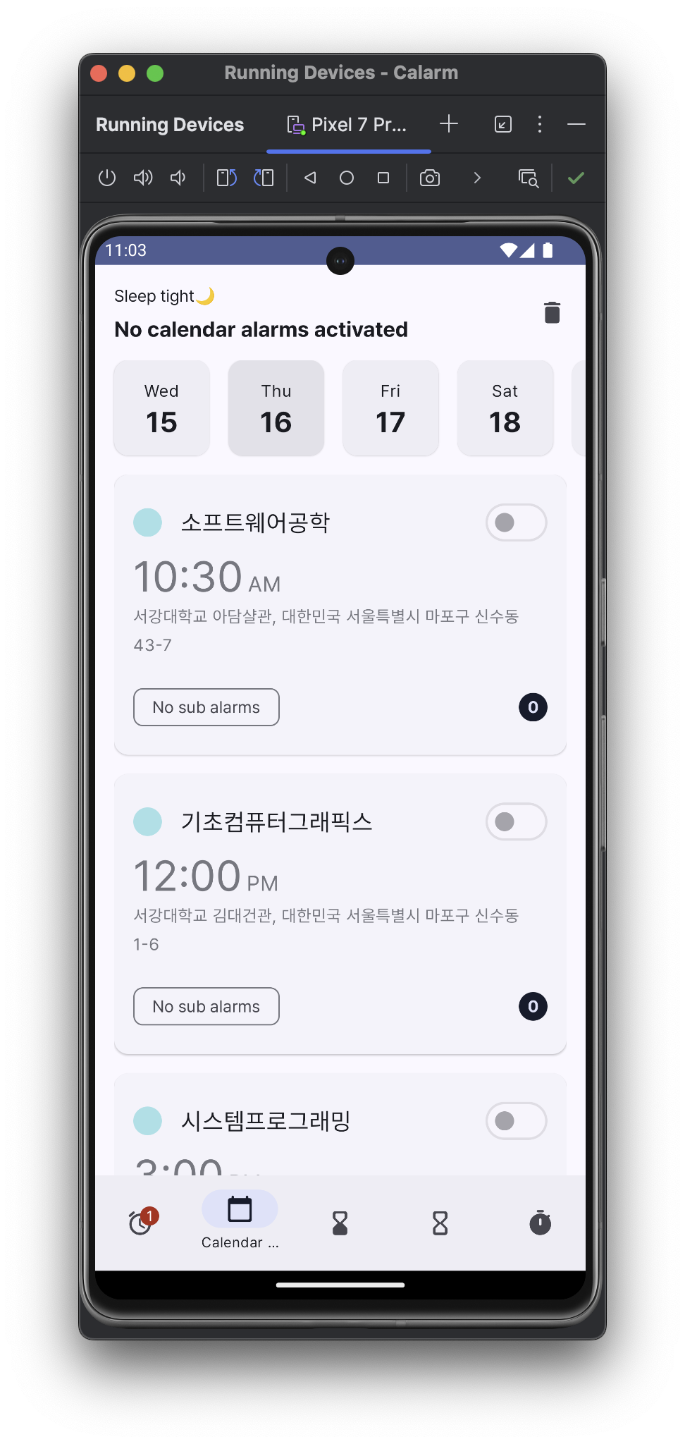 현재는 캘린더 알람 설정까지 완료!