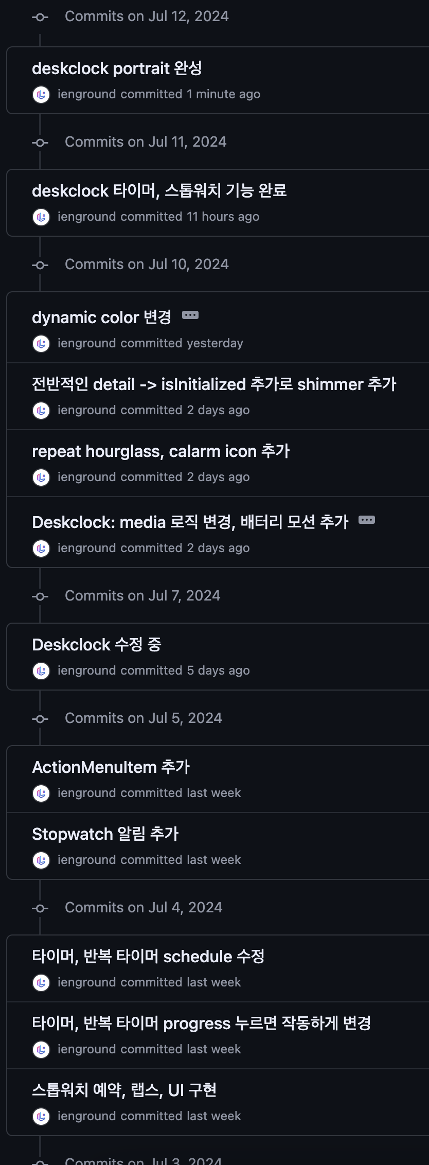 탁상시계 부분도 새롭게 만들었는데, 알림도 항상 안 보여주고 보여줄 때만 뜨게 했다. 이번에 이걸 다시 만들면서 두 가지 기능을 알게 됐는데, 일단 다른 앱의 NotificationChannel을 가져올 수 있는 방법이 있었다. 덕분에 그 채널이 무음인지를 판단할 수 있고 무음이라면 화면에 안 띄우게 했다. 두번째로는 원래 음악 앱의 노티에서 음악 정보를 직접 가져오다 보니 앨범아트 화질도 낮고, am.isMusicActive인가 함수로 play/pause를 가져오다 보니 Spotify 등의 앱으로 PC에서 재생할 때는 그 값이 안 맞는 경우가 있었다. 그것들을 모두 구현할 수 있었다.
