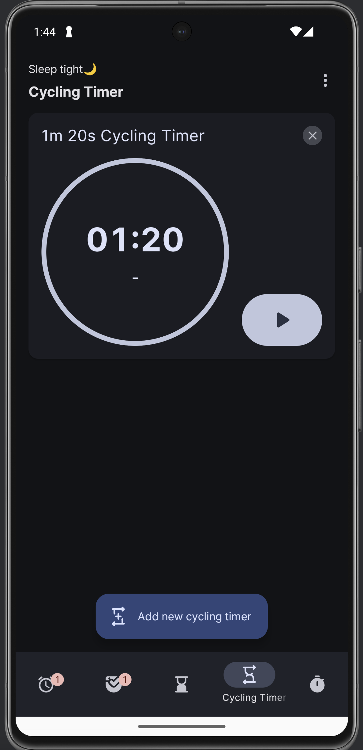 타이머는 일단 하나도 없어도 리스트로 시작한다. (이전에는 추가할 수 있는 창부터 보였음) 이건 그냥 이게 구현하기 쉬워서 이렇게 했다.