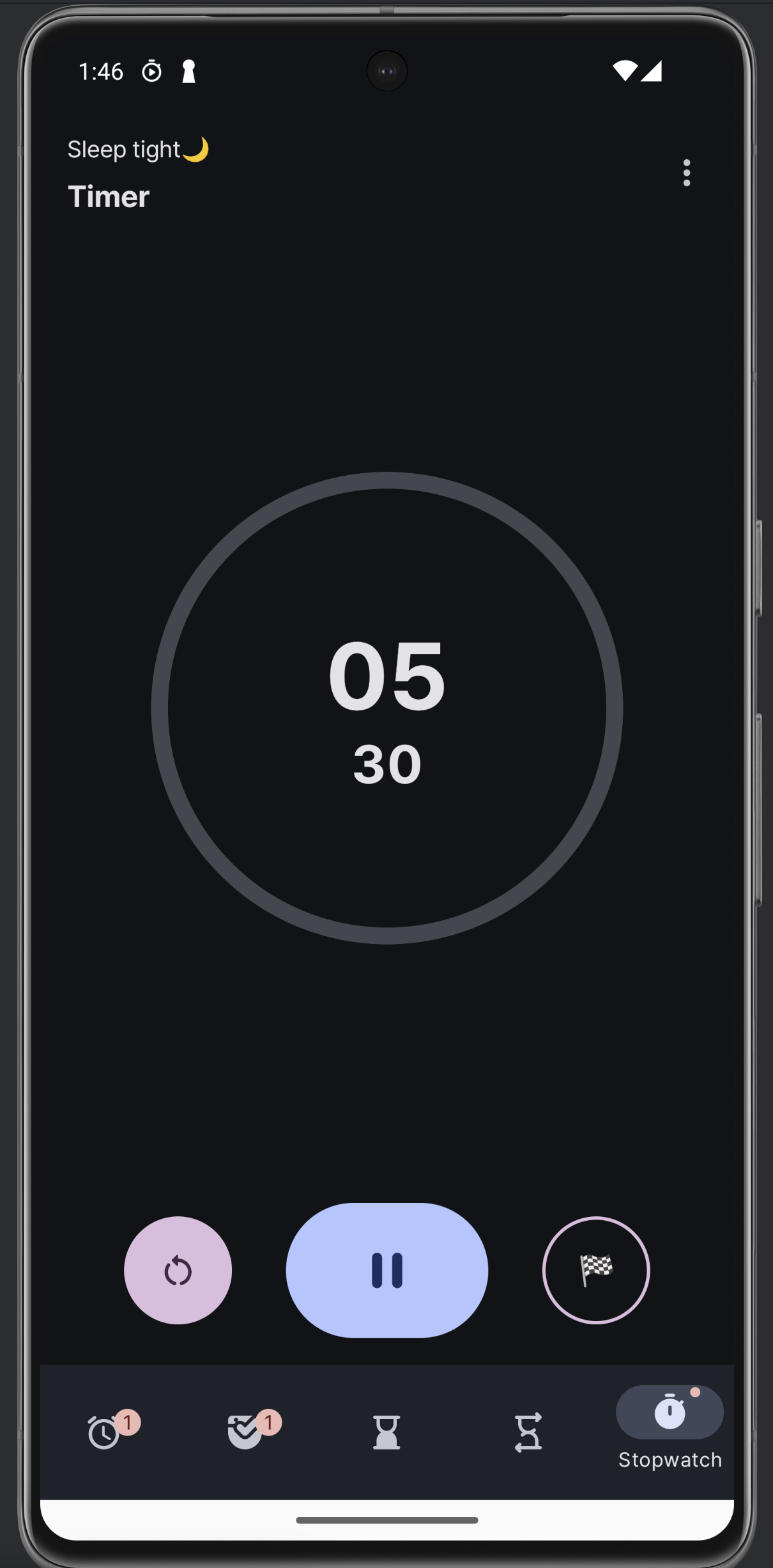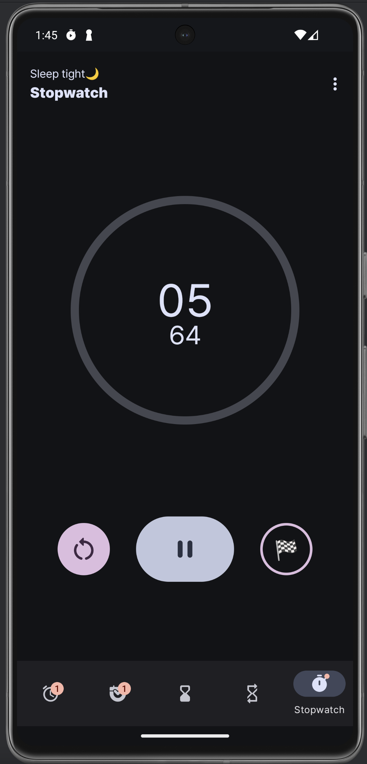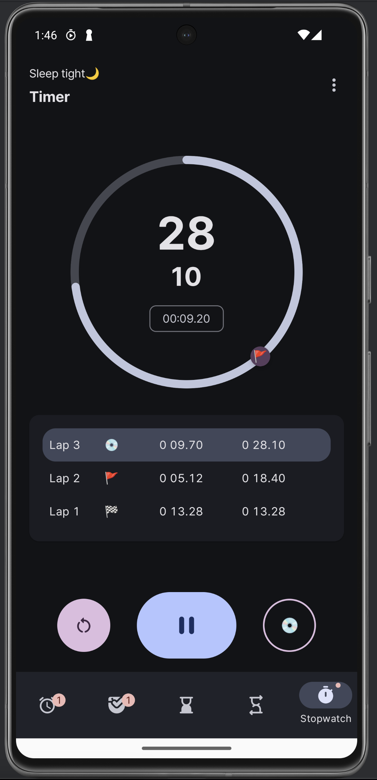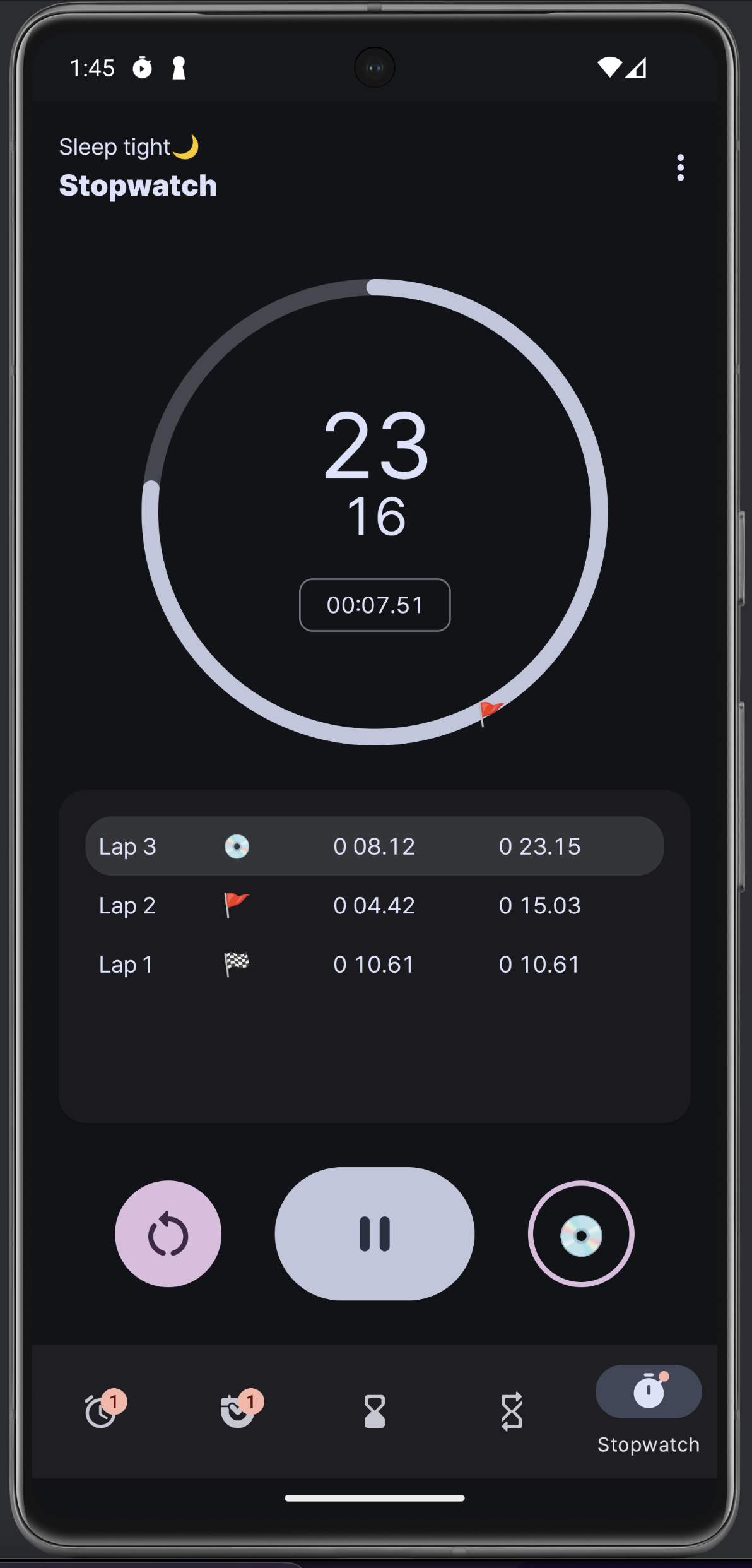 스톱워치, 타이머를 하고 있는 모습이다. 확실히 프로그레스 / 색 구분이 명확하니까 보기가 훨씬 좋은 것 같다.