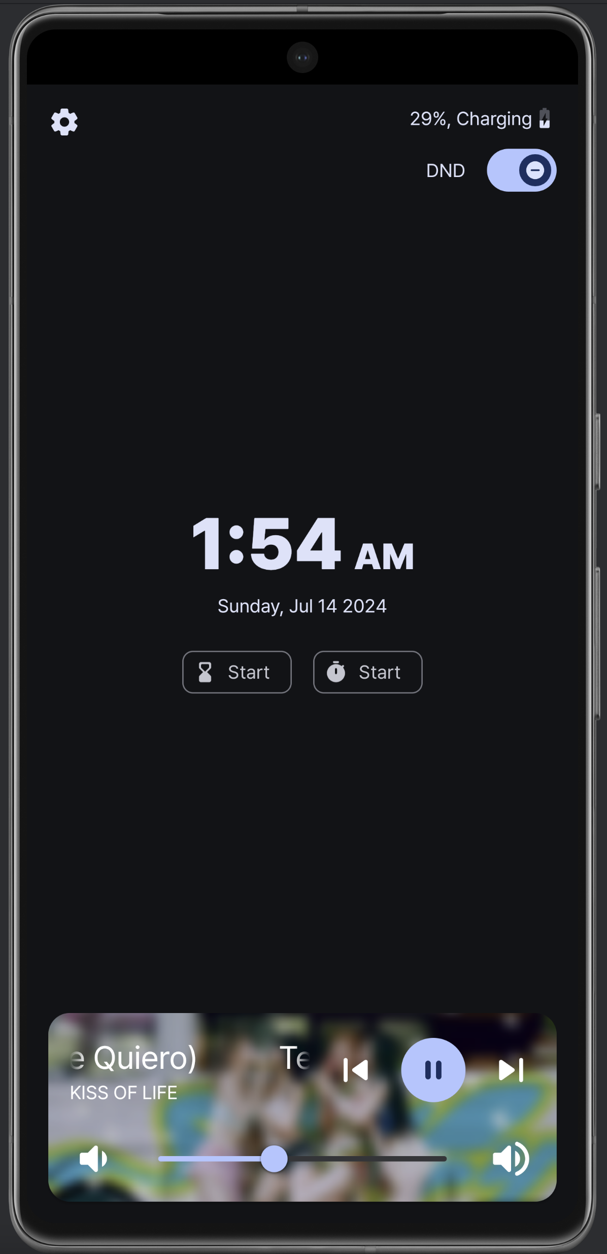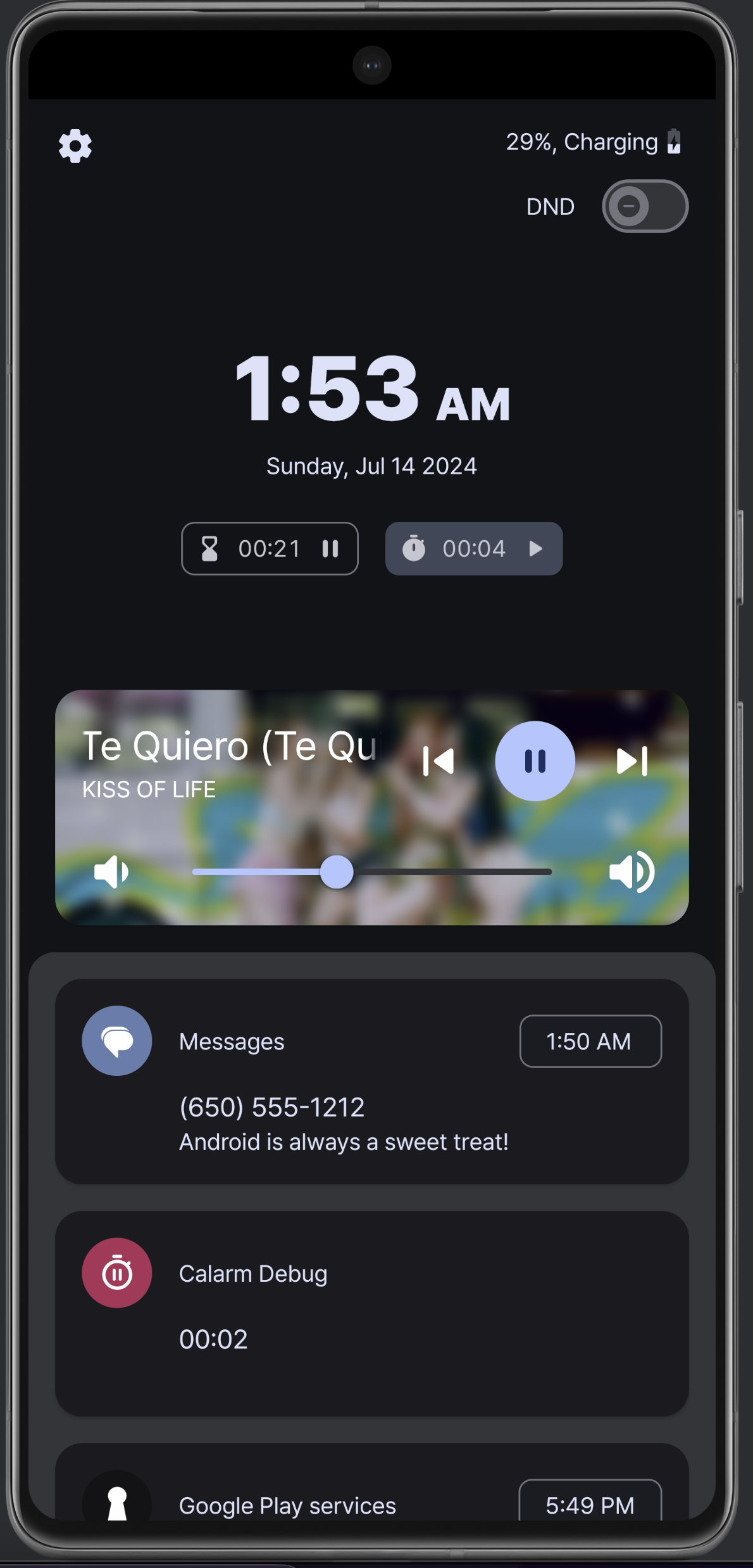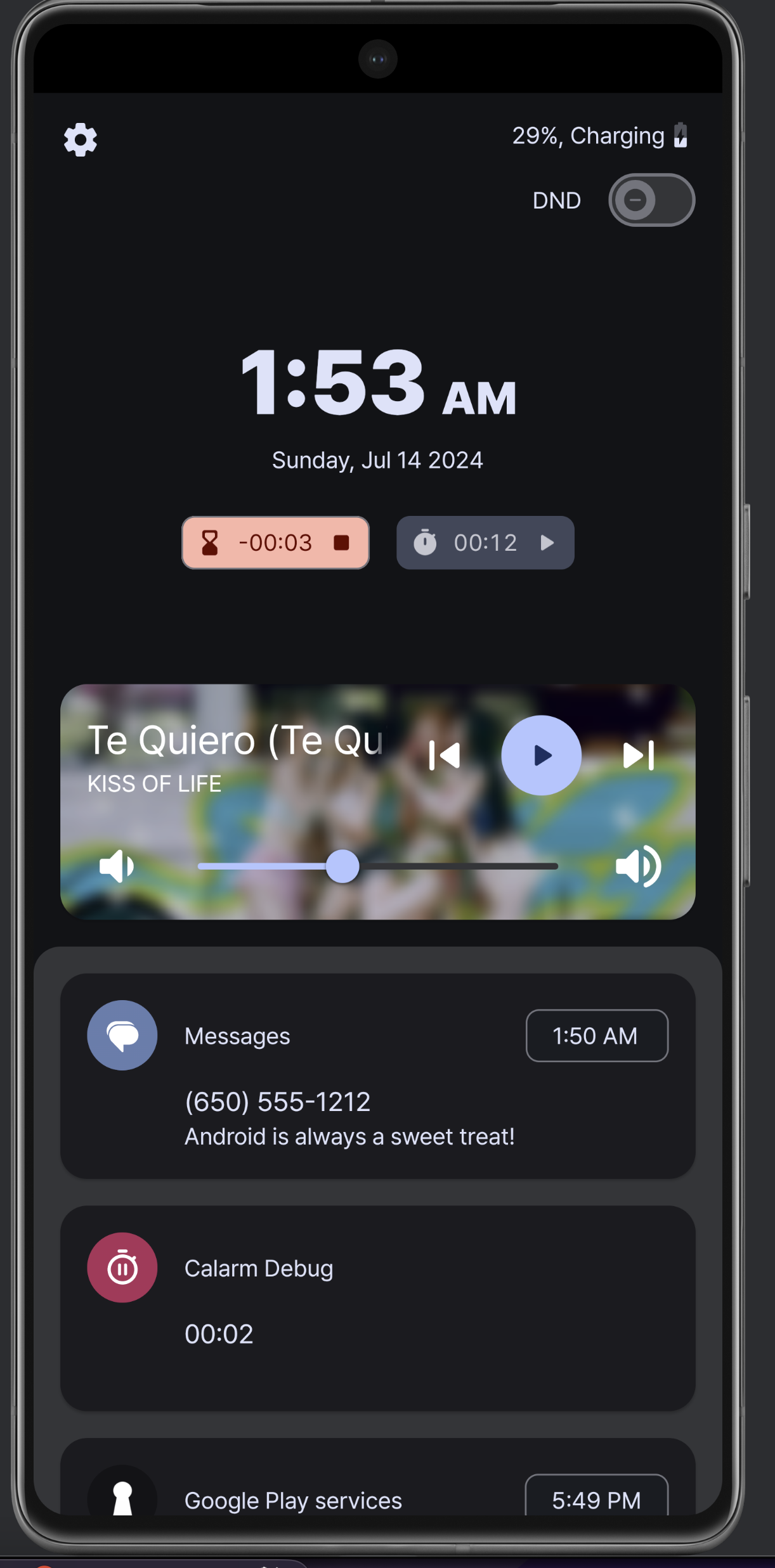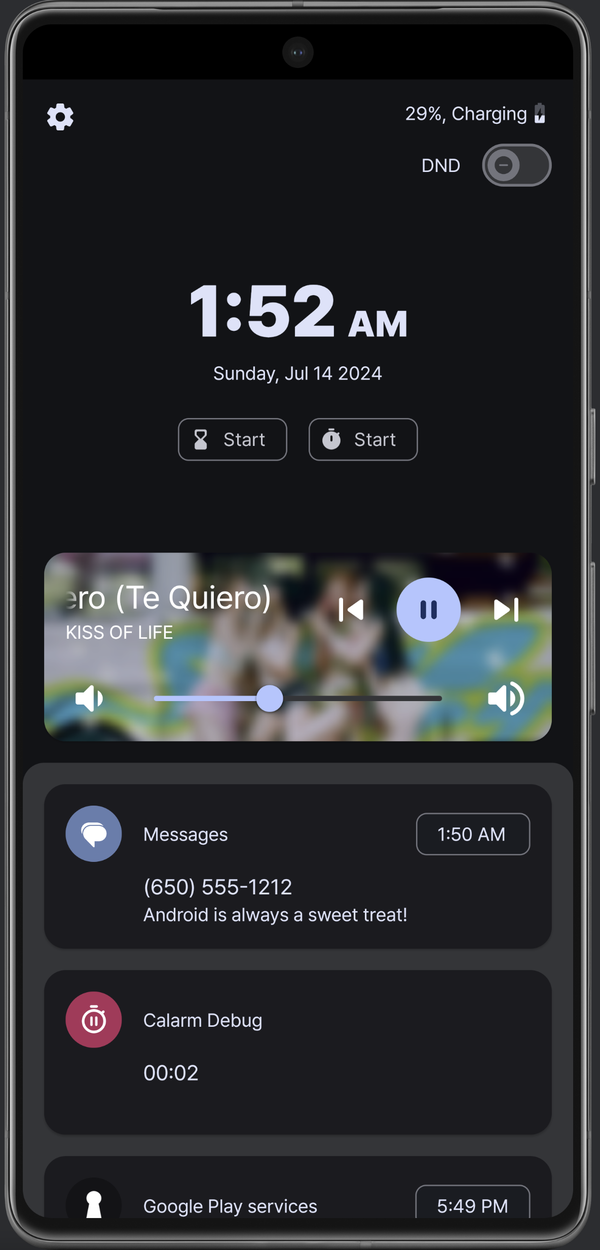 탁상시계는 그냥 새롭게 엎었다. 디자인은 애플의 Standby를 참조했다. 사실 얘는 세로용은 아니지만, 세로용 디자인도 나름 신경을 썼다. 가장 큰 차이는 알림을 항상 보여주지 않는 것. 생각해보니 모든 알림을 보여줄 필요가 있을까? 이제는 올 때만 뜬다. 그리고 이전에는 음악을 미디어 알림에서 직접 가져왔는데, 세션을 통해서 미디어 play info를 가져오는 방법이 있더라. 그래서 앨범아트도 고화질로 들고올 수 있었고, Spotify Connect 등 디바이스에서 직접 재생되지 않는 애들도 재생 정보를 잘 가져올 수 있었다.