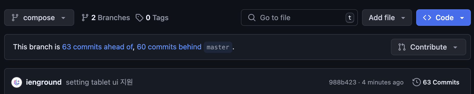 그리고 재밌는 사실 - 컴포즈 브런치가 메인 (마스터) 브런치보다 커밋이 더 많다.