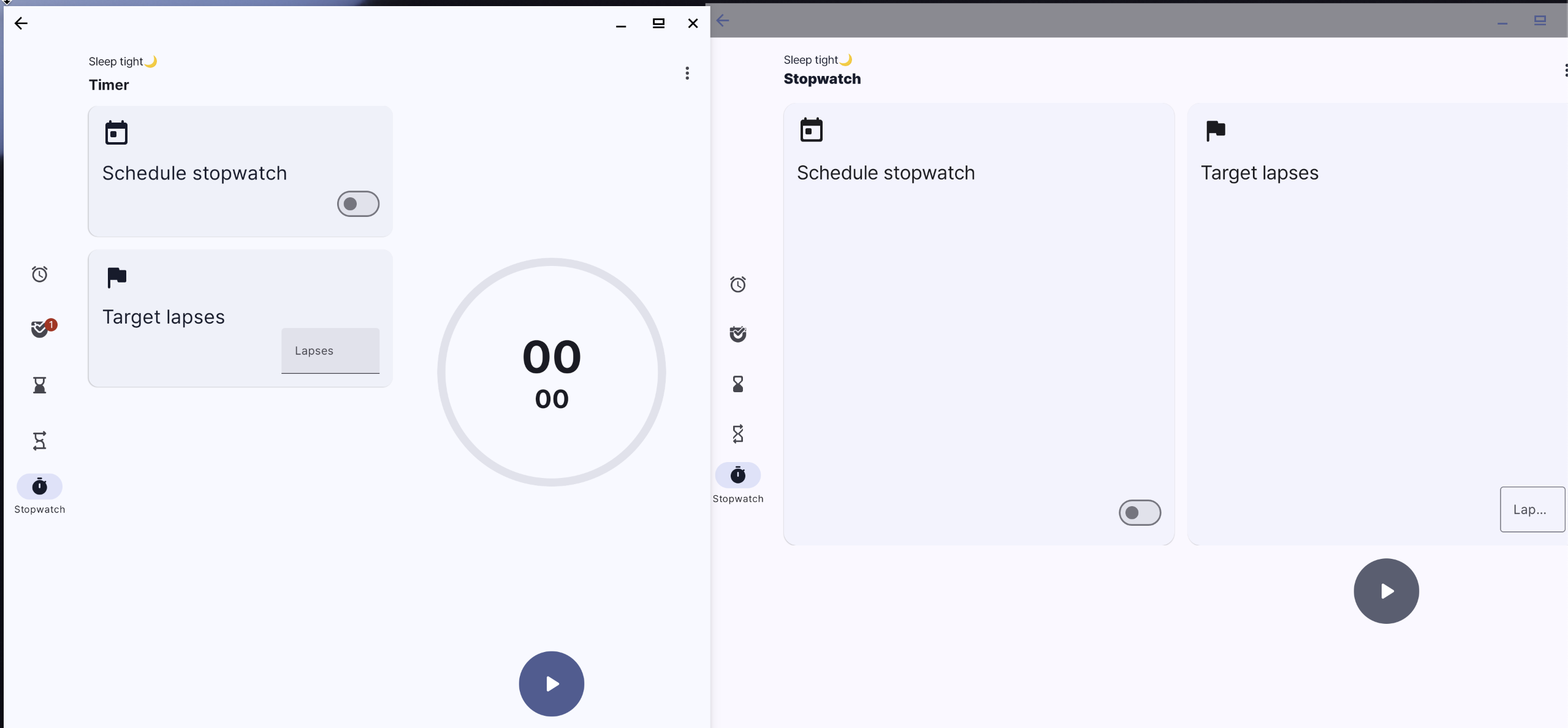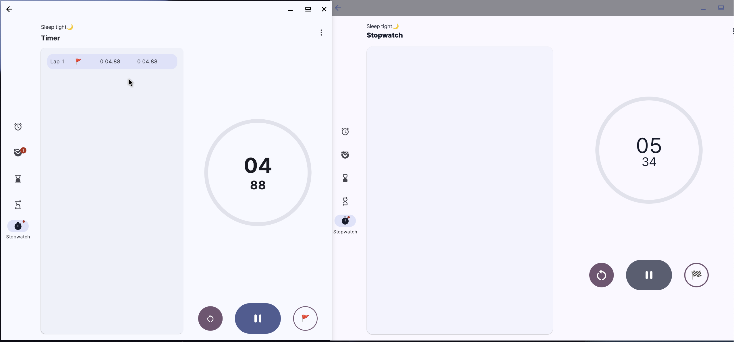 스톱워치는 겉으로 보기엔 큰 차이가 없는데, 꽤 수정이 많았다 (이건 태블릿 UI에 차이가 있음) .