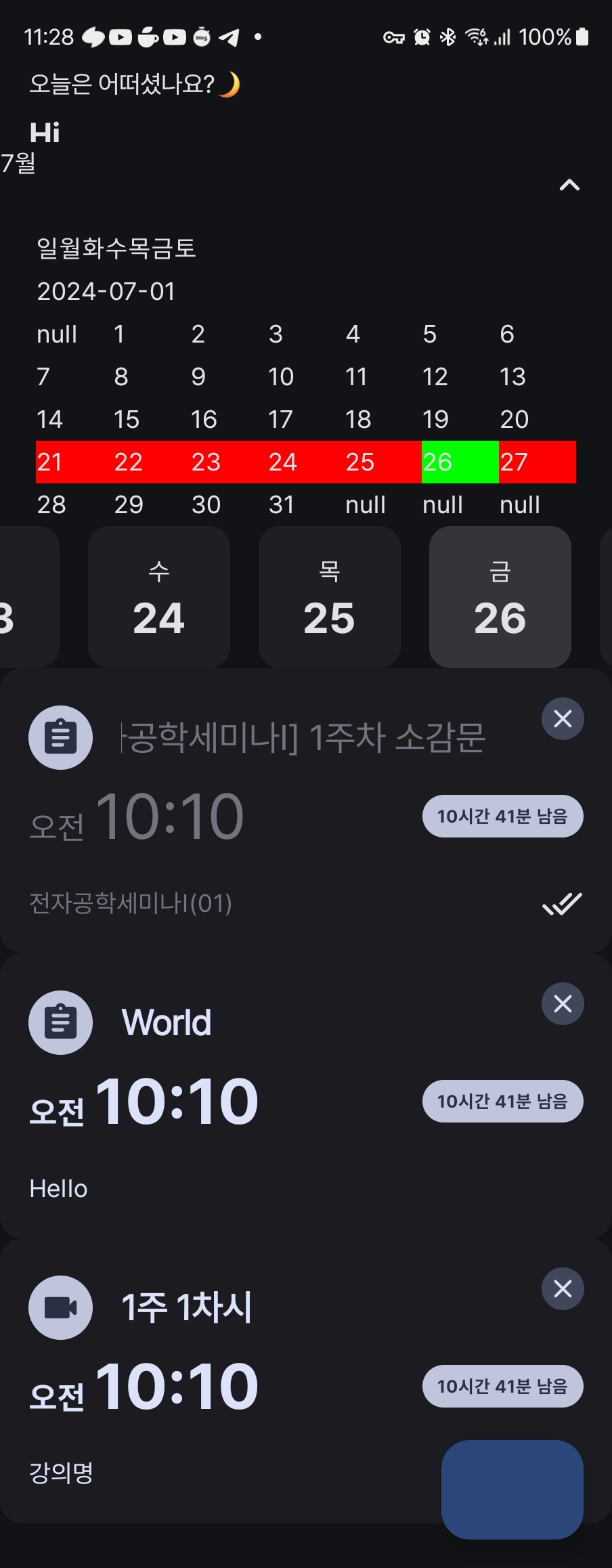 그리고 아래에는 주간 캘린더. 이건 compose로 바꾸는 작업이 얼마 안 걸릴 것 같다.