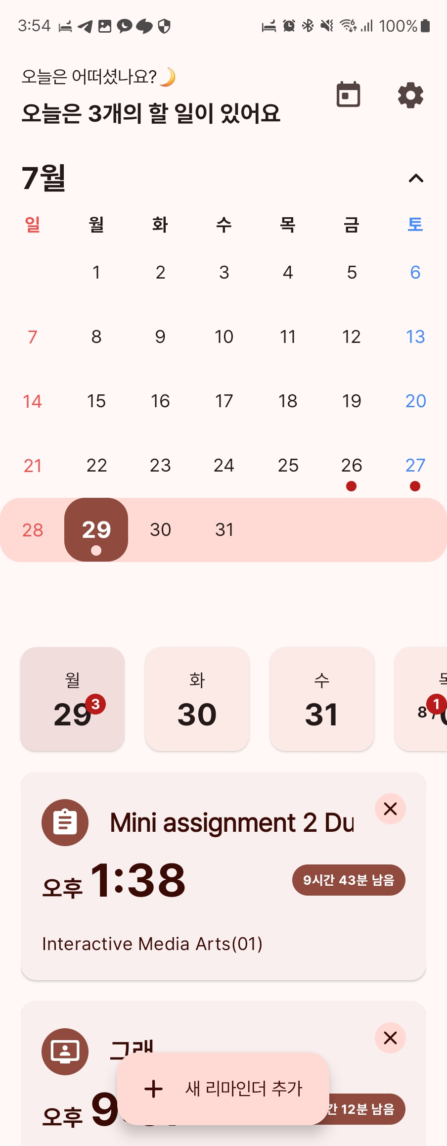 24일 올린 글에 있는 달력이 저렇게 완성됐다. 1, 2 사진의 badge는 왜 저렇게 움직이는지 검색해도 안 나오는데, 차차 해결을 해야 할 것 같다.