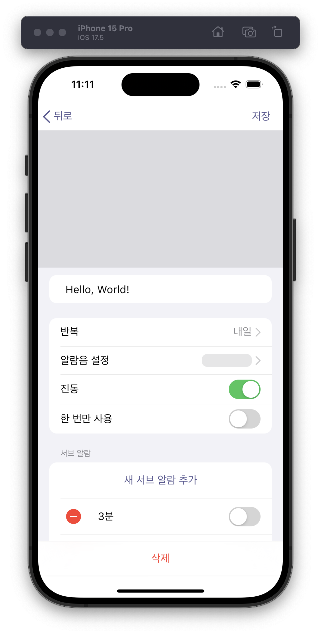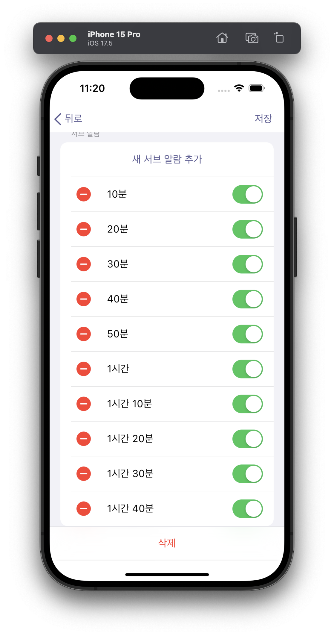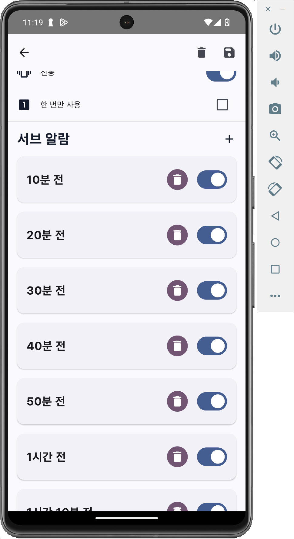 서브 알람 추가 화면