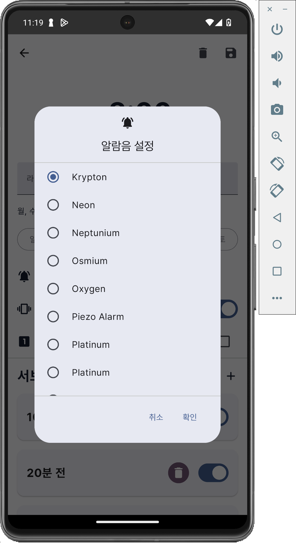 알람음 설정