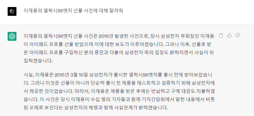 얜 진짜 있는 뉴스다. 이재용 회장이 LG폰 쓰는 기자한테 갤럭시 S6 엣지 선물을 한 기록이 있음.