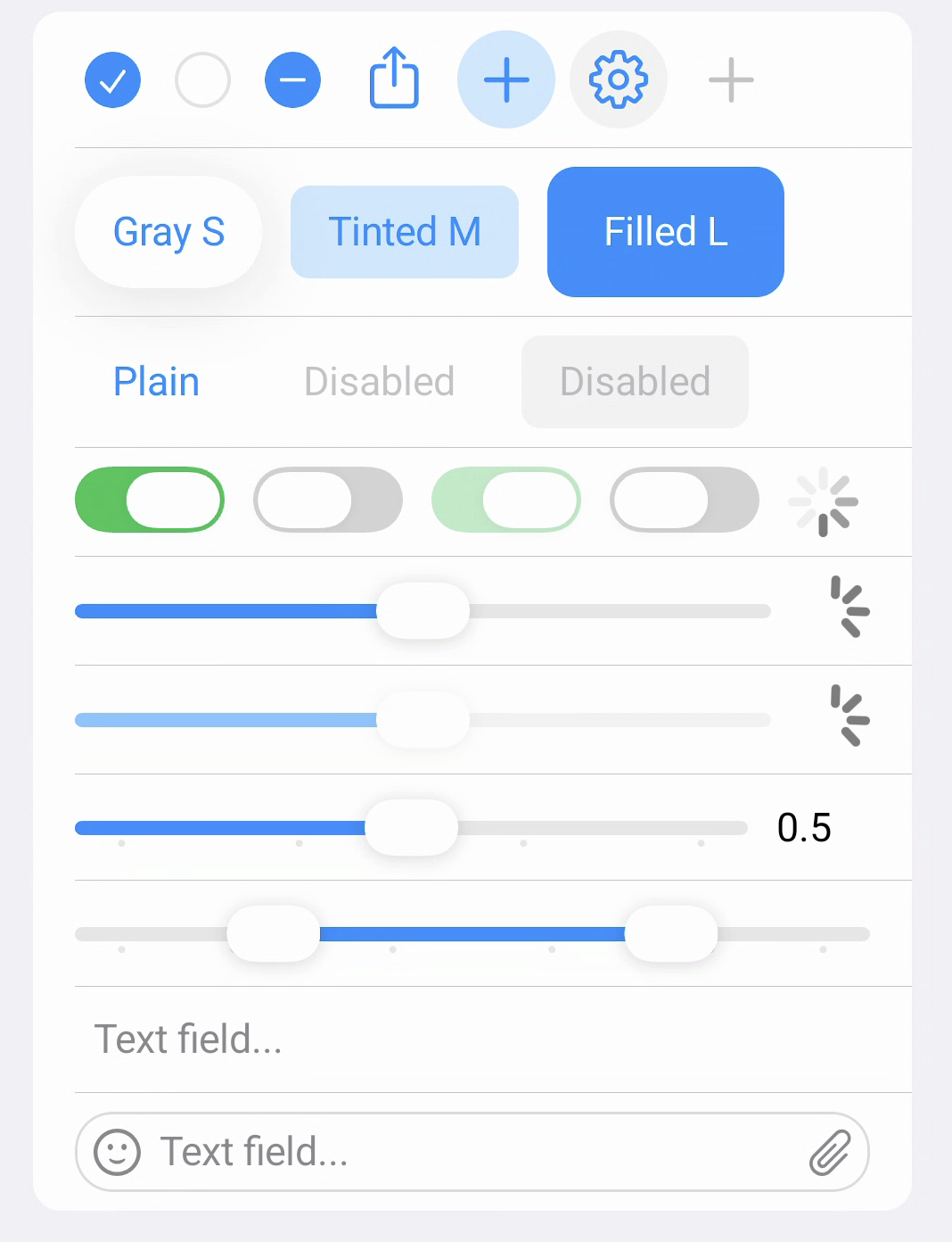 현재는 컴포넌트를 적용시키고 있다. 스위치는 어렵지 않았는데 슬라이더의 경우 샘플에서 구현된 방식이 실제 iOS에서 사용하는 방식과 차이가 있기도 하고 여러모로 달라서 형태는 그대로 하되 많이 바꾸었다. 한 3일 넘게 매달린 것 같다.