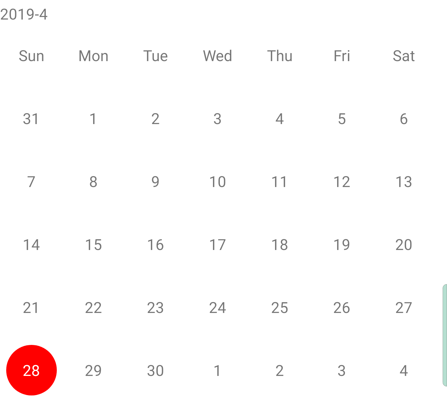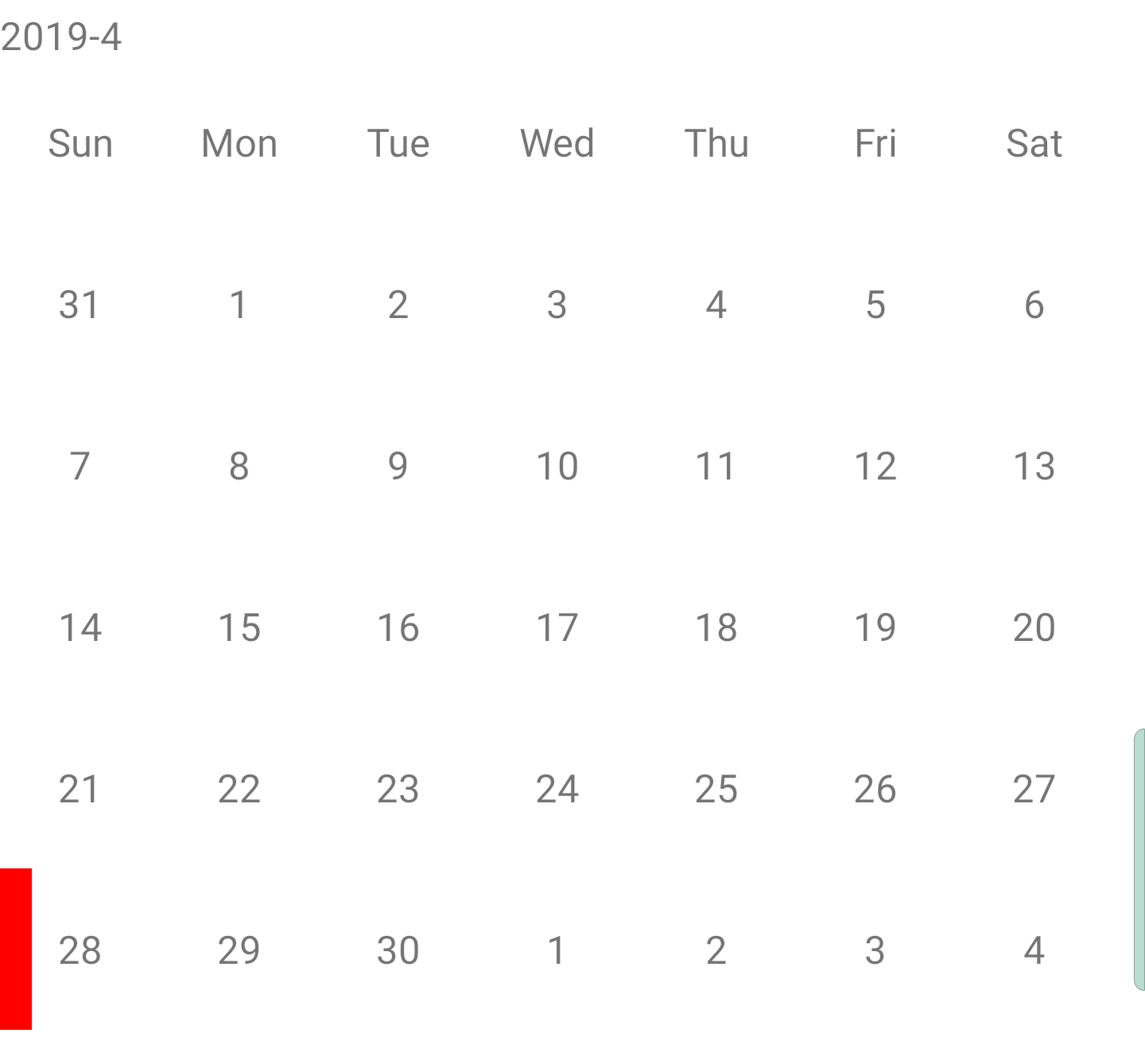 또한 mCalendarView 라이브러리는 각각의 날짜 셀들을 커스터마이징할 수 있는데, 제한이 존재한다고 합니다.