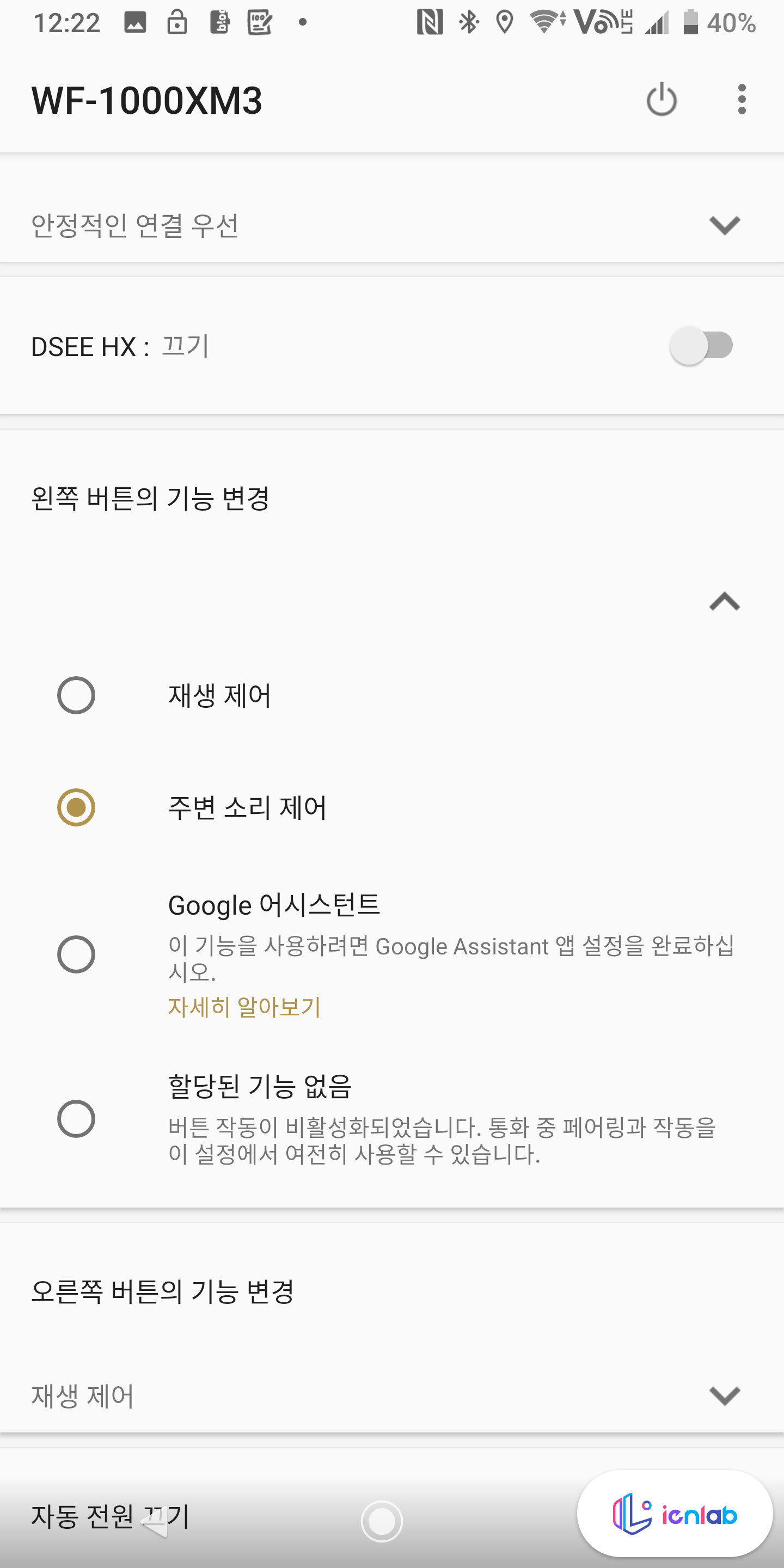 그때그때 껐다가 켰다가 너무 귀찮습니다. 거기다 저는 원래 노이즈 캔슬링 설정 버튼이던 왼쪽 버튼을 Google 어시스턴트로 바꿔놓기도 했구요. 그냥 알아서 설정해주면 안 되나? 그래서 정말 알아서 모드를 설정해 줍니다.