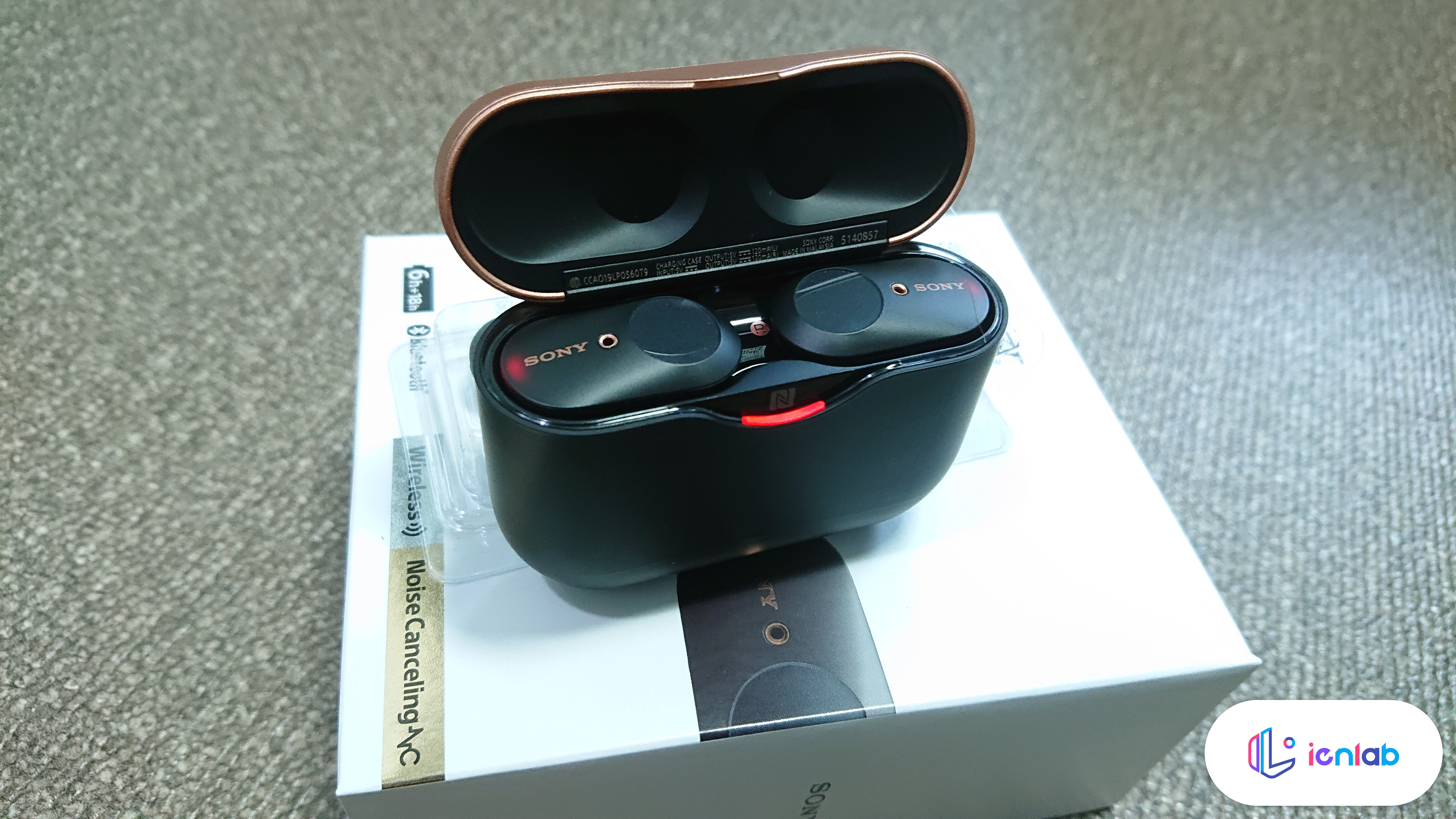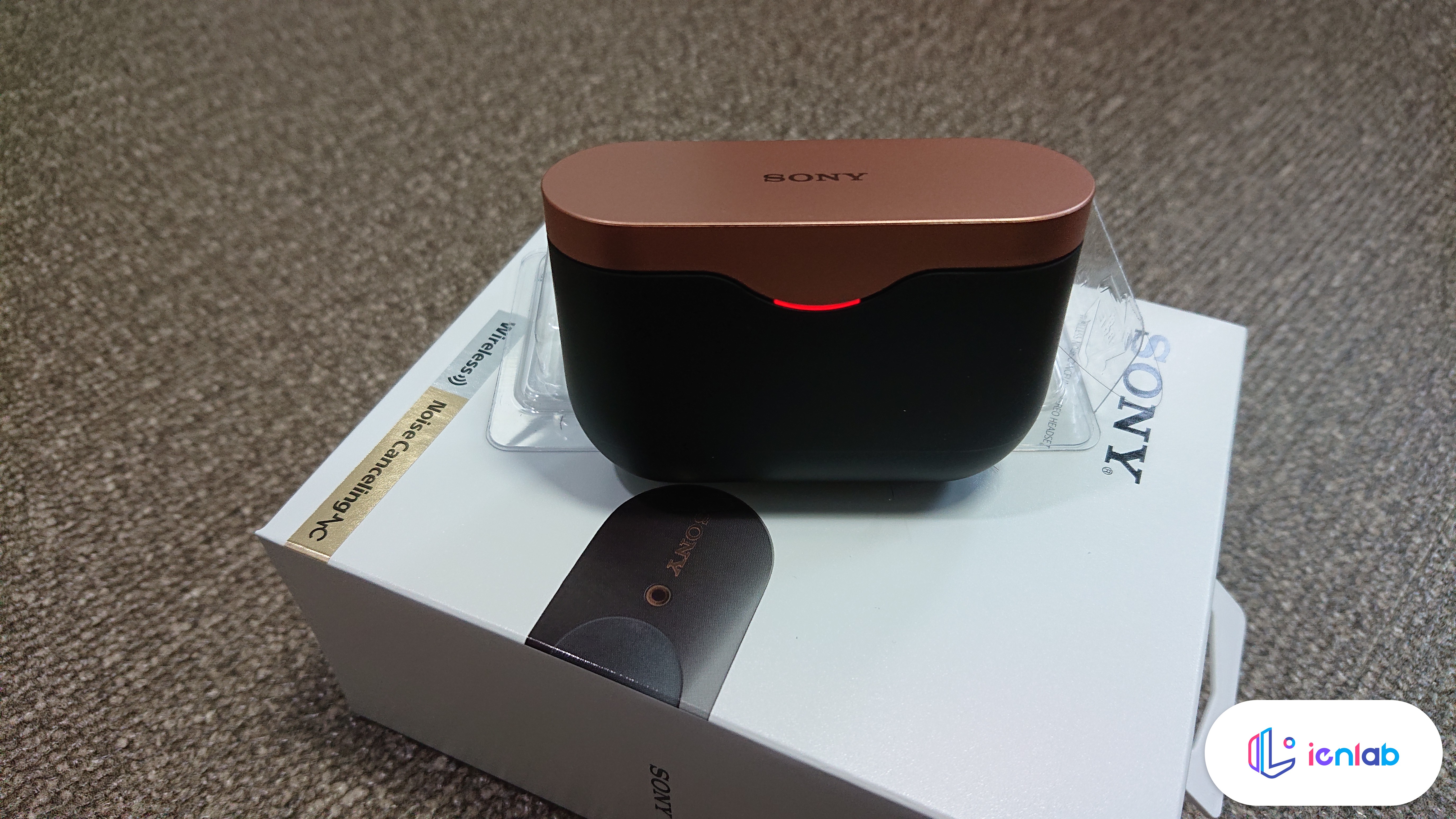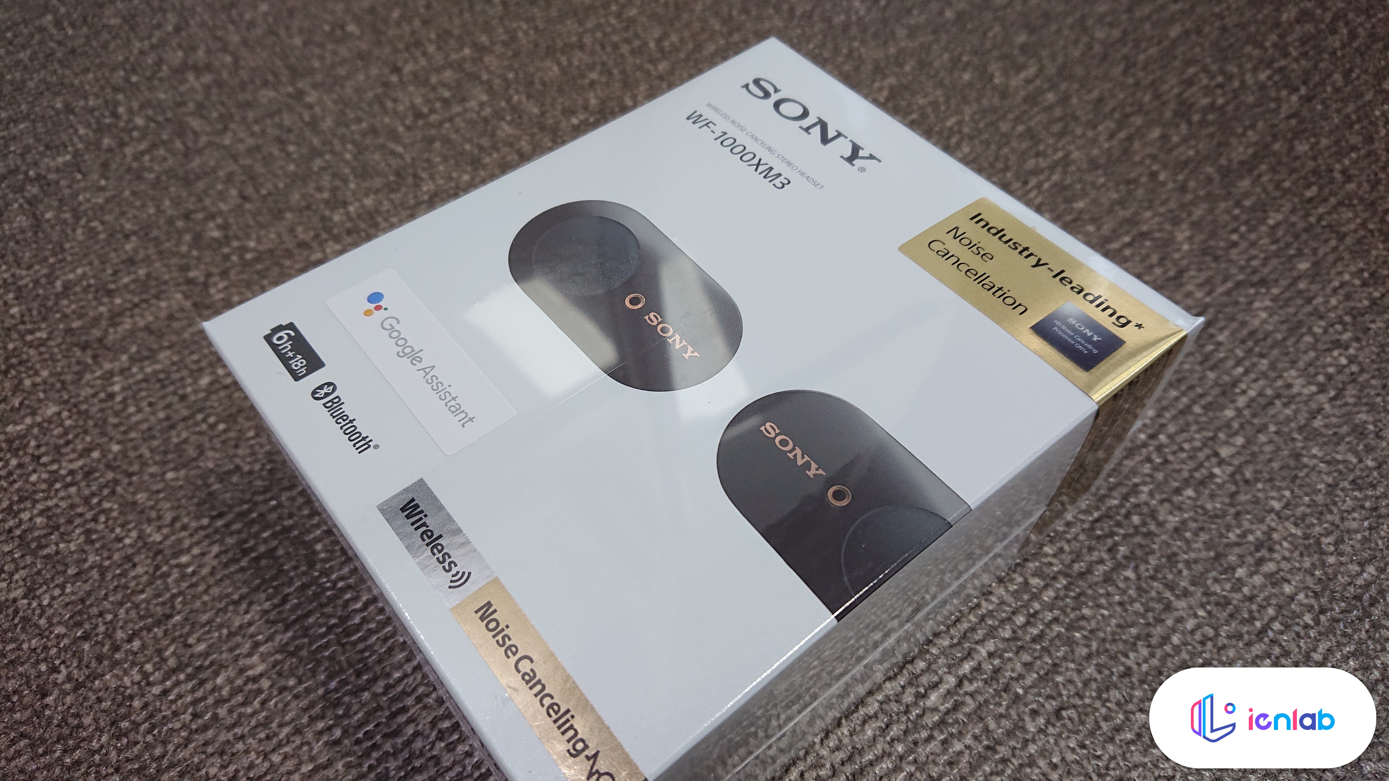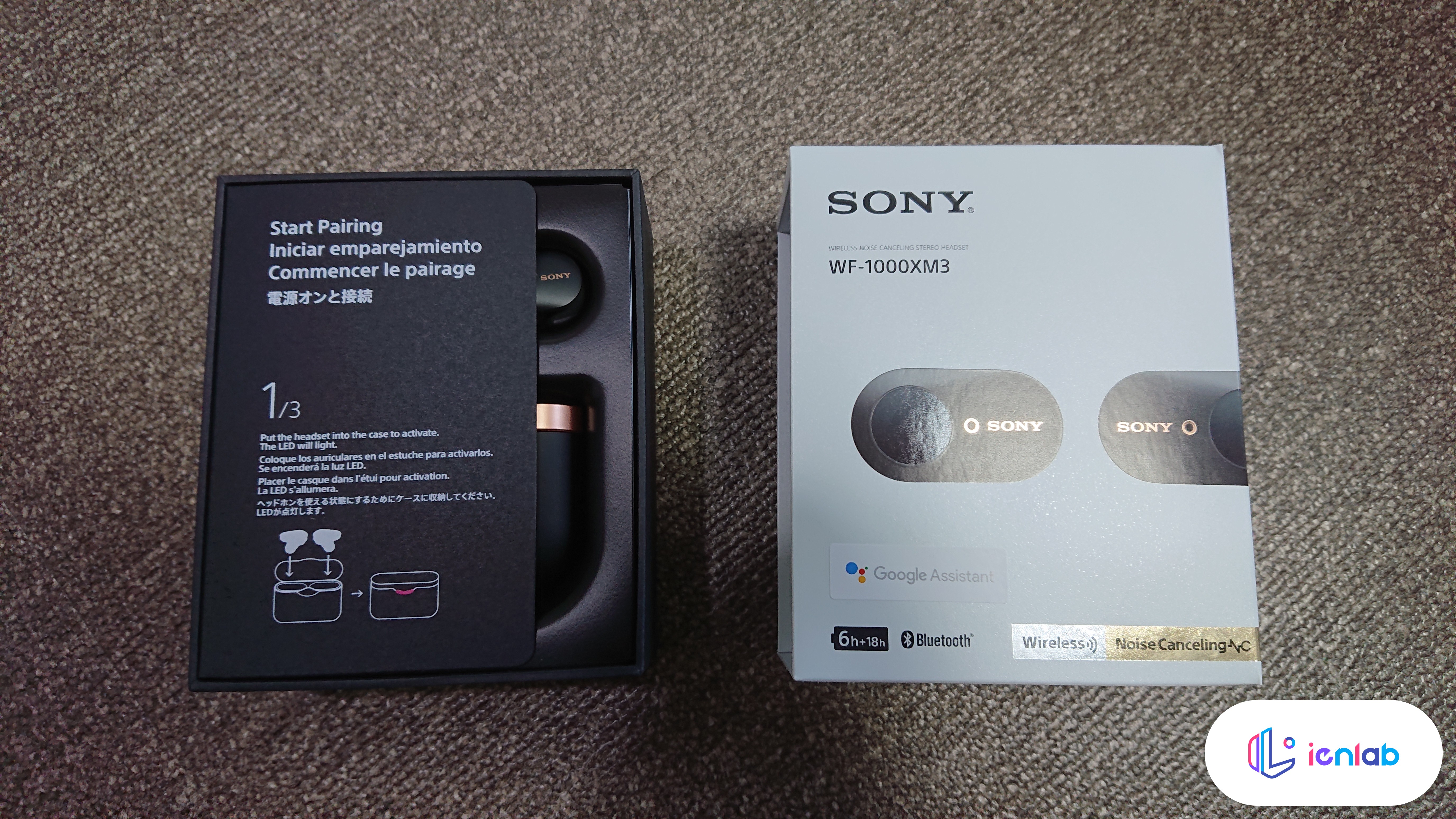 되게 신경써서 찍은 사진입니다(....). 검은색 모델을 주문했는데요, 구글 어시스턴트가 된다는 스티커가 붙어 있습니다. 깔끔한 패키징 디자인은 아니지만 소니스럽네요. 정품인증 스티커는 꼭 따로 떼서 내부에 있는 설명서에 붙여 두세요.