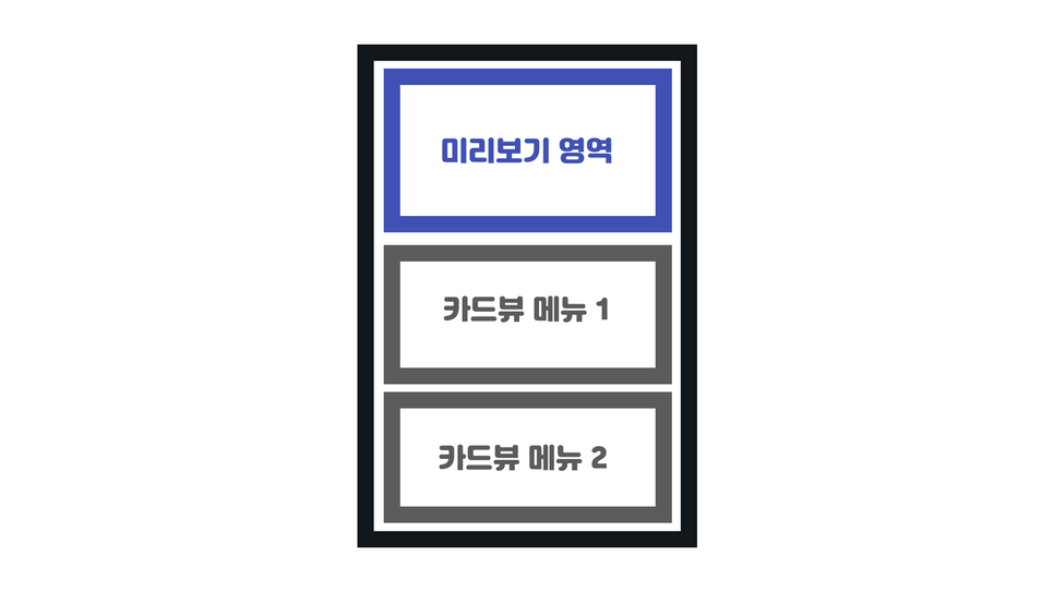사용자분들의 의견에 근거하면, 감성에디터가 다른 어플리케이션에 비해서 쉽다고 말씀하시더라고요. 그건 다른 어플리케이션과의 구별되는 배치의 차이 때문이라고 생각됩니다. 카드뷰 메뉴 1, 메뉴 2 쪽은 스크롤 형식으로 메뉴가 숨겨지는 게 아닙니다. 그렇기 때문에 어디에 어떤 메뉴가 있는지 하나하나 사용자가 살펴볼 필요가 없기 때문에 쉽다고 하시는 것 같습니다.
