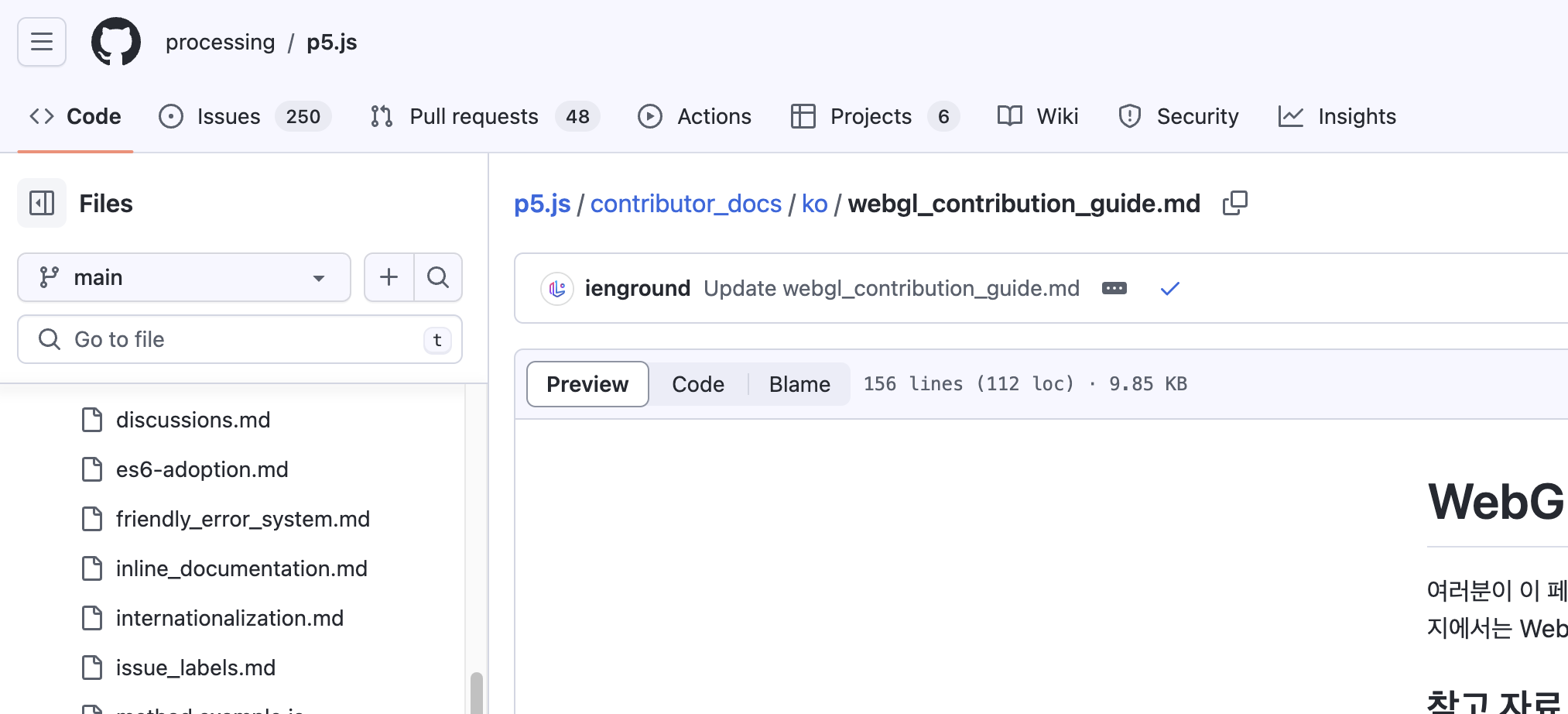 24년 3월부터 프로세싱 재단의 p5.js 번역 작업에 참여하고 있습니다.